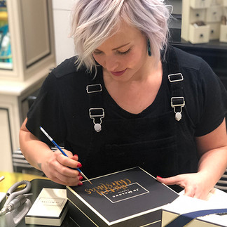 Kirsten brings the deep artistic expertise, she’s lived and breathed calligraphy since before we met, and she knows exactly how to make lettering shine on any surface. Together, we’ve developed a system that keeps our work consistent, creative, and client-ready.